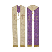 Štola je iz damasta s križni. Na prsih je vezan zlati križ. Na obeh straneh štole